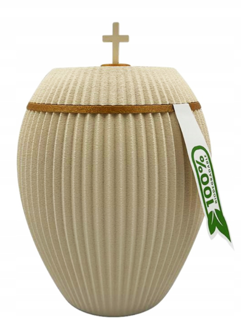 Urnan är utformad för att passa begravningar där naturmaterial och hållbarhet står i fokus.