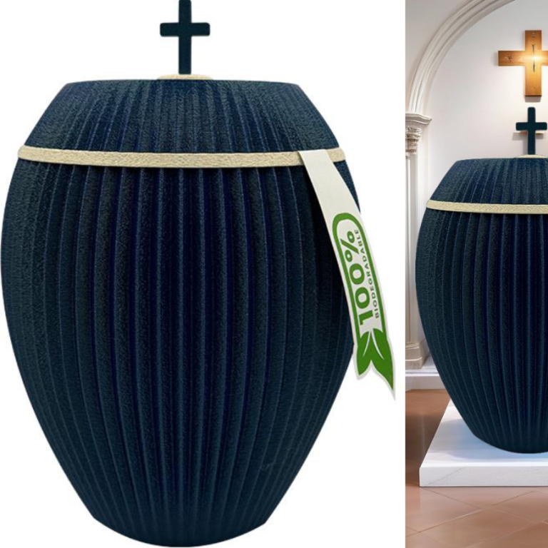 Vi presenterar en ekologisk begravningsurna tillverkad av biologiskt nedbrytbara material – ett värdigt val för personer som värdesätter hållbarhet och respekt för naturen. Den eleganta designen och det noggranna hantverket gör denna urna till ett vackert och symboliskt sätt att hedra minnet av en närstående.